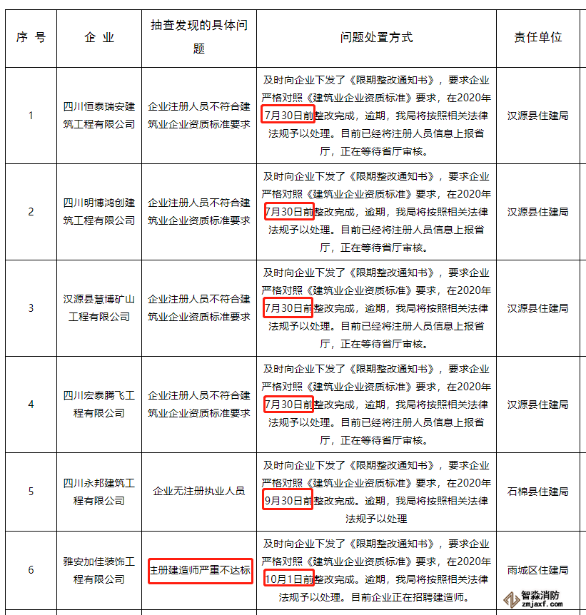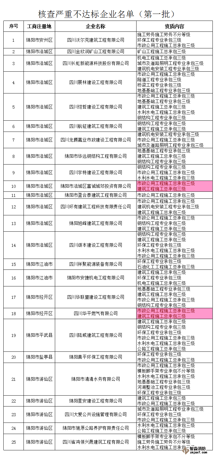 不符合资质标准的企业名单如下:
