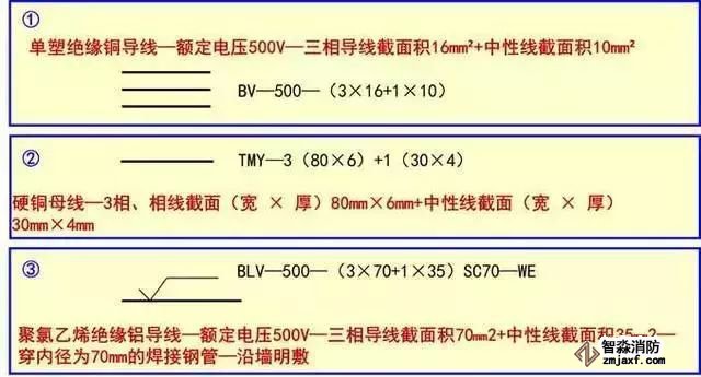 ②BLV,BV:塑料绝缘铝芯、铜芯电线。