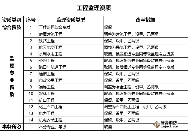 2014年11月,住建部将专业承包资质由60个压缩至36个。
