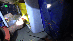 据了解,当时女孩正在游戏机前玩耍,钓鱼机一得分,球会自动从转盘往下掉。小女孩玩的时候,球没掉下来,就伸进去抠,结果接卡住了转盘下面的缝隙里面。