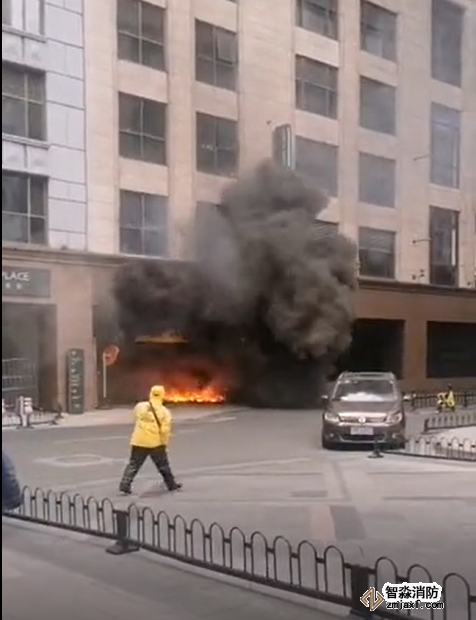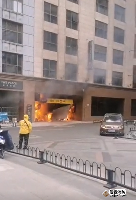 根据现场路人透露,起火位置大约位于该商场停车场,起火原因疑似车库上方电路着火,具体原因待官方通报。