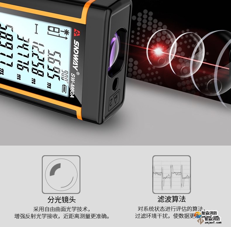 产品简介:激光测距仪量程不小于50m;精度:3mm测量距离、面积、空间、体积测距仪是测量距离的工具,从测距基本原理,可以分为激光距仪、超声波距仪和红外距仪三类。激光测距仪是目前使用最为广泛的测距仪,是利用激光对目标的距离进行准确测定的仪器。激光测距仪在工作时向目标射出一束很细的激光,由光电元件接收目标反射的激光束,