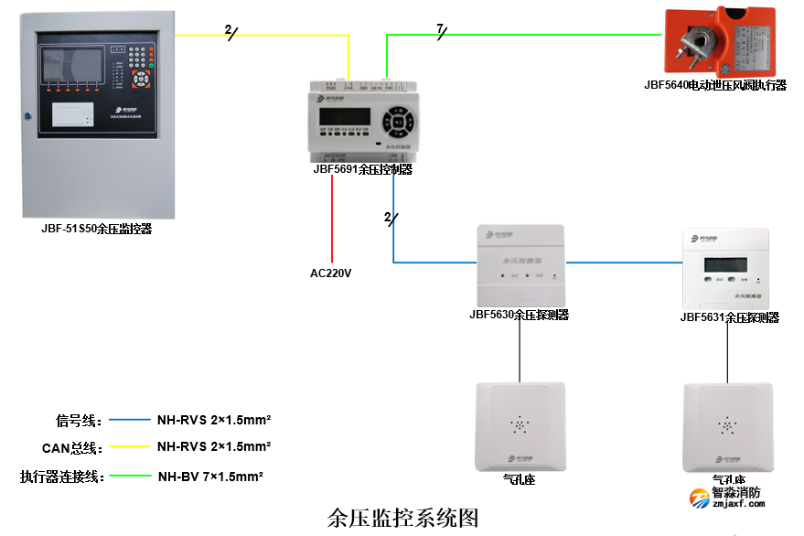 青鸟乐鱼在线(中国)余压监控系统由JBF-51S50余压监控器、JBF5691余压控制器、JBF5630/JBF5631余压探测器及JBF5640泄压风阀执行器等部分组成。