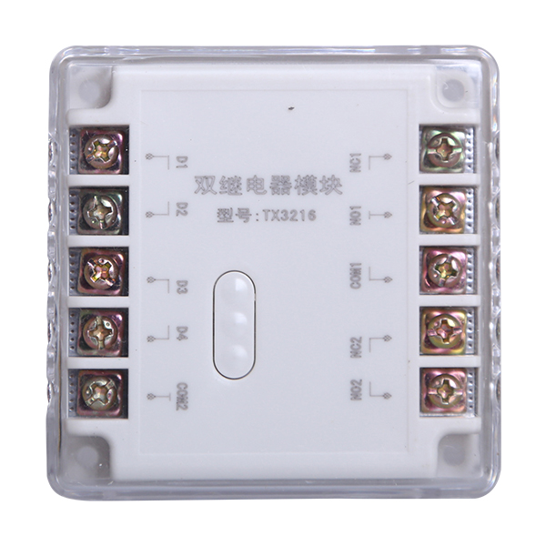 泰和安TX3216型双继电器模块是一种非编码模块,用于实现需直流大电流启动的设备及交流220V启动的设备的控制。与输入/输出模块配合使用,防止强电造成的系统总线危险。