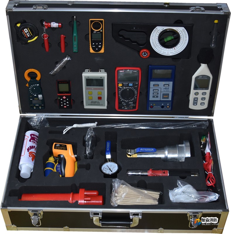 配置:感烟探测器试验装置;感温探测器试验装置;水喷淋系统试水检测装置;消火栓系统试水检测装置;数字兆欧表;数字噪音计;数字微压计;数字测距仪;红外测温仪;垂直度测定仪;多功能工程坡度测定仪;四合一测量仪(温度、湿度、风速、照度);钳形电流表;数字万用表;数字秒表;附件:数字试电笔、钢卷尺、打火机、加热笔附件盒、发烟棒盒、烟嘴、充电器、丁烷气瓶、仪表测试笔、、多功能刀。