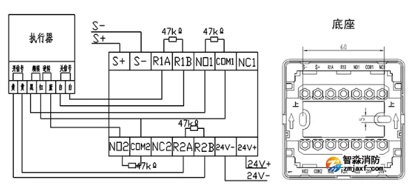 图示为顺时针开阀,如逆时针开阀,需调整接线。如编程不检断线,47K匹配电阻可不接。