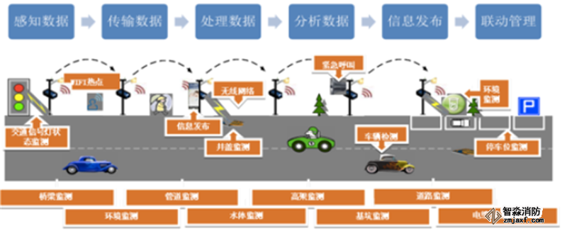 ▲智慧灯杆感知、传输、处理、分析数据,发布信息联动管理